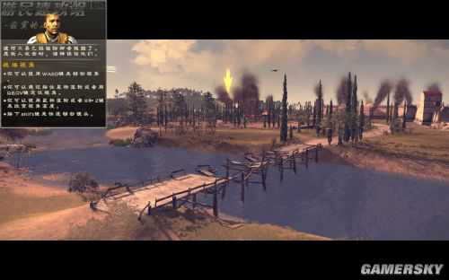 正所谓知己知彼百战百胜,在正式投入战斗之前要先观察一下战场形势。。。按W,A,S,D键可以移动镜头(按住shif键可以快速移动),按住鼠标中键然后拖动鼠标可以旋转视角。根据系统提示依次把镜头移动到战场上有黄色箭头标示的地点即可。