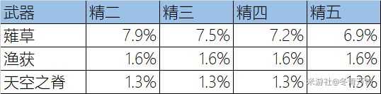 分析渔获、天空薄荷与专武的差距,为武器池的抽取提供一定参考