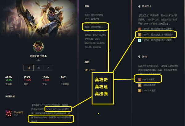 羊刀:主要为了快速叠加韦鲁斯攻速,特别是在游侠羁绊触发下,攻速特别快。
