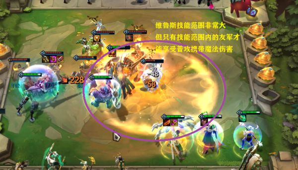注意:不在技能范围内的友军是无法享受到携带额外魔法伤害。
