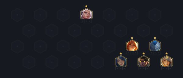 棋子构成:从上到下,从左到右依次为:芮尔、蕾欧娜、泰坦、大眼、艾希、辛德拉、韦鲁斯、拉克丝。