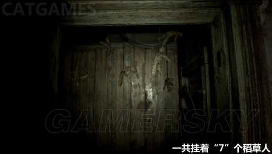 6.在游戏中,现实主角探索屋子时会发现楼梯间有绳子吊着的稻草人,共“7”只。
