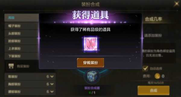【合成几率】20%的几率是稀有装扮,80%的几率是随机同部位高级装扮