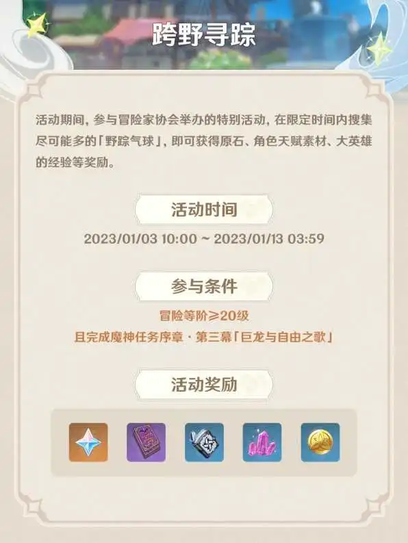正文 2025年《原神》跨野寻踪玩法说明 跨野寻踪怎么玩 游戏新星 /2025-03-23 21:39:53 /35 浏览量 0323 《原神》跨野寻踪是即将开启的全新活动,不少玩家想要了解这个活动的具体玩法,下面请看官方带来的《原神》跨野寻踪玩法说明,希望能够帮助大家。 欲顿闲愁无顿处,都著在两眉峰。 -- 展开阅读全文 --
