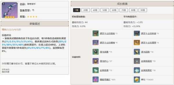 如果是未二命九条,实战中需要靠大招才能需上buff,以及主副C都需要吃到buff的情况。那么可以选择元素充能向的武器,四星中祭礼弓是第一档的,其次是其他充能能向武器,五星中只有一把终末嗟叹之诗是充能向武器。
