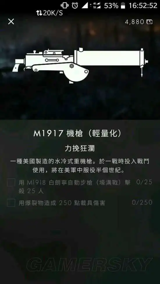 1917机枪,唯一的亮点就是250发的大弹箱(蠢驴真是够了,这机枪的弹夹越做越大),反正这枪我从来不换子弹。稳定性不错,但是射速低,用来做火力压制、火力支援是绝对够用(250啊!)。但是这枪太难看,我还是喜欢我的大MG14/17!