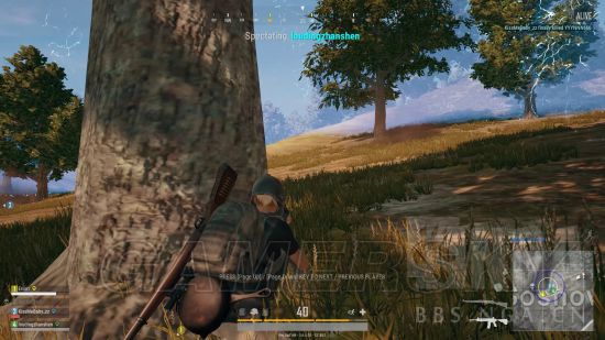 35方向,很近,手雷爆炸旁边那棵树,一个人。