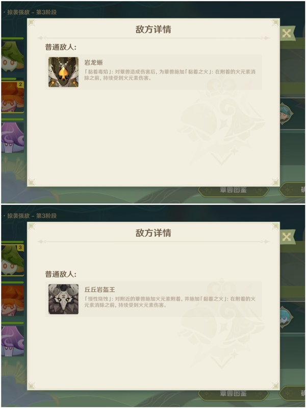 ②第二阶段:敌人有两种特性,普通敌人有对元素冰/雷100%的抗性,如下图↓