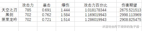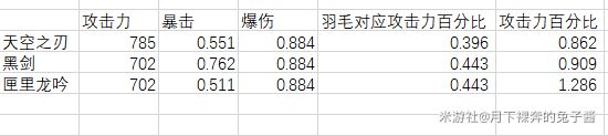 黑剑:攻击力449、暴击率25.1%。不考虑武器被动。