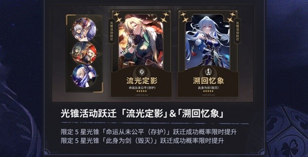 ④【溯回忆象】中的限定光锥只有复刻限定光锥,没有新增限定光锥,【流光定影】中的限定光锥只有新增限定光锥,没有复刻限定光锥。