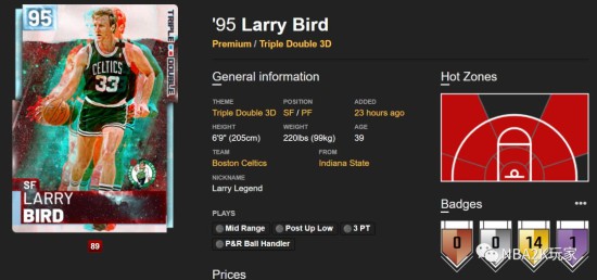 拉里伯德是球迷们非常熟悉的一位传奇球星,能力出众、球商高,还有着不俗的“垃圾话”能力,而本次《NBA2K19》更新的3D主题卡包中,伯德虽然只是一张钻卡,但还是看点十足,下面小编就为大家带来《NBA2K19》钻石伯德3D主题卡数据分析,一起来了解一下吧。