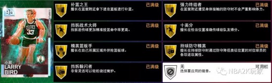 十四枚金色徽章加上一枚紫色徽章的徽章组成,接球投篮还是比较实用的,这张卡的可补徽章有不少,坚韧得分手必补,脚踝、单人快攻、背转身、好斗者、沉底步等都可选。
