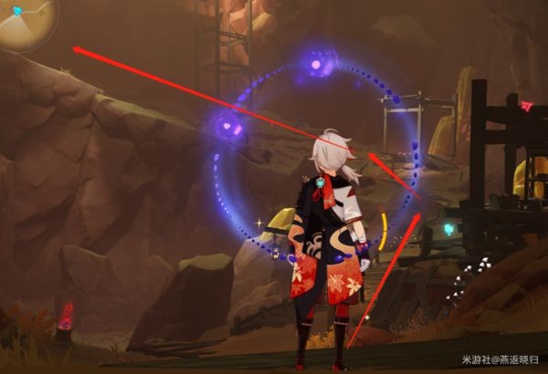 然后我们一直跟着箭头走就好了,路上会有不少光点,我们跟着光点可以快速移动
