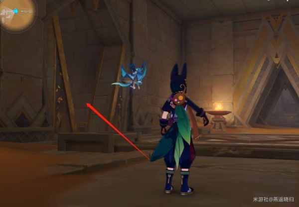 进到最里面这个房间,左边角落有个机关,我们去释放一下,然后一直跟着它就就行