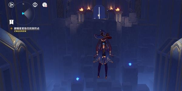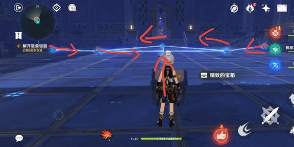 连线完成后,打开宝箱出现一个星星,一直跟着它会回到殿堂,进入水池完成一个挑战(非常简单)。