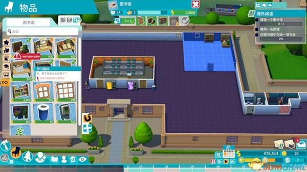 (小技巧:图书馆中可以放两处书架,另外还可以放一些桌子等物品,这样做可以更好的消化大量的学生需求。)