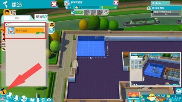(小技巧:你可以建造任一面积大小的科学实验室,建议不要建造太大面积,并且尽可能将它建造在墙角,因为之后还有其它建筑物等待你建造。)