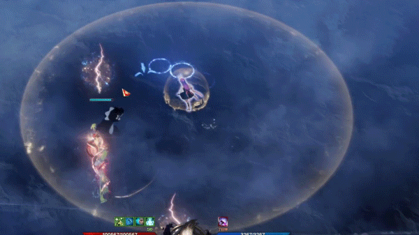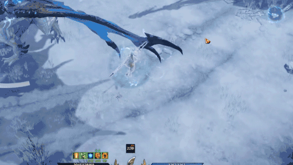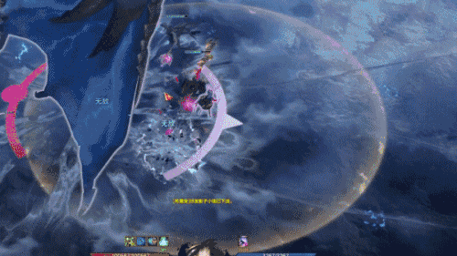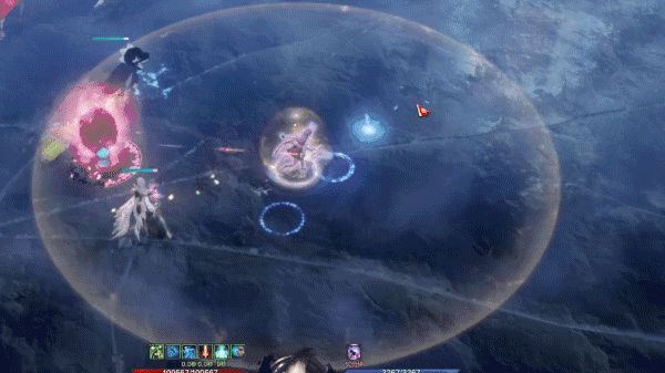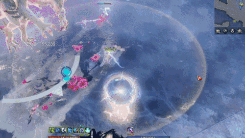 最后还有两个小机制需要冒险家们注意,【卡尔艾利格斯】收缩双翼,生成一个将自身包裹的蓝色反伤保护罩,周围出现大范围蓝色落雷,冒险家们只需站在保护罩范围内停止攻击即可,否则将受到反击伤害并被击飞。