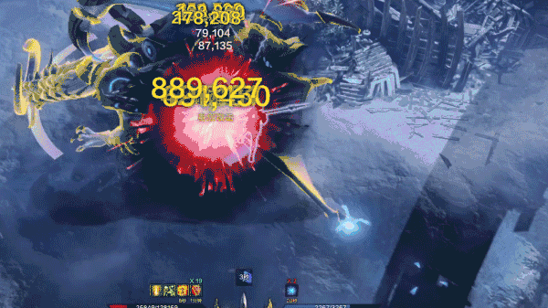 【卡尔艾利格斯】腾地而起,释放环形落雷,最后在中心位置下落砸击地面,冒险家们根据地面上的提示圈灵活走位即可。