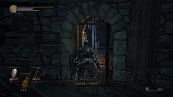 获得升降梯钥匙后,利用篝火“高墙边塔”进行传送,进入堡垒后往下两层,有印象的玩家会记得这边有一扇锁着的门,这扇钥匙就是打开这道门的。