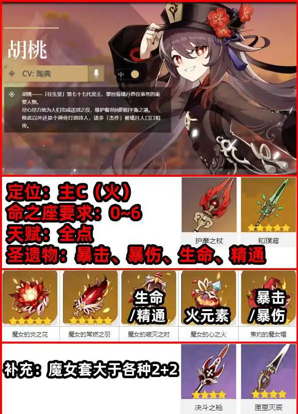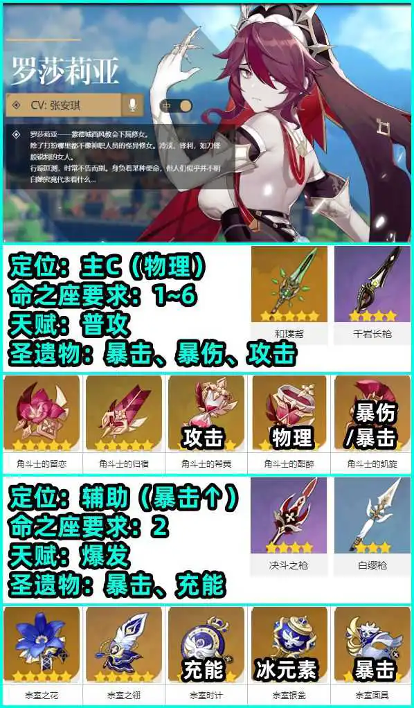 《原神》中胡桃以及罗莎莉亚都是最近新出的角色,还有部分玩家不了解这两名角色该如何培养,下面请看“星石酱”带来的《原神》罗莎莉亚及胡桃一图流培养攻略,希望能够帮助大家。