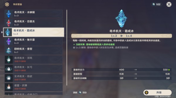 机关存在等级,不同机关在达到指定等级后可解锁额外功能。升级需要使用奇术符,奇术符可在完成关卡后结算获得。