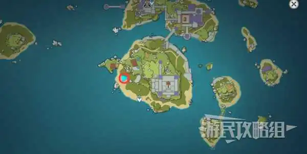地图位置如下图所示,从传送锚点左转沿海岸一直往前走即可看到。需要先与宝箱旁的夜鸦互动开启剧情。