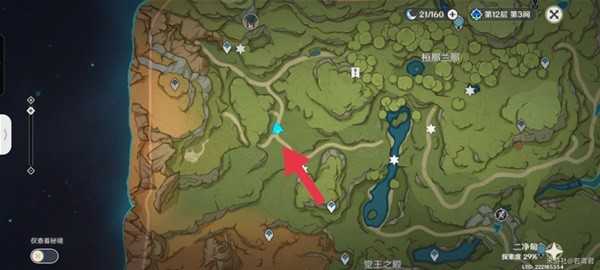 如果少了的话,请看上面的图是不是有漏了, 看完后,我们来到这里恒那兰那的七天神像这里。我们从7天神像这里出来之后,朝着南方向也就是小地图的下面。