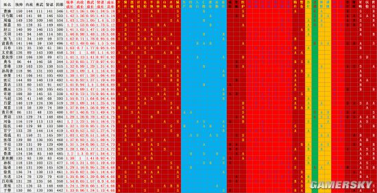 武将玩家培养的核心,还是先给大家来张表吧,一张神将的,一张名将的。但其实武将之间的差距不是很大。