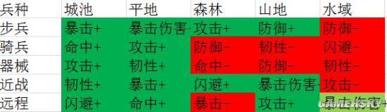 战斗的重点来了,装备升星差不多的时候或者装备强化有1级差距的时候战斗影响不大,特性影响也不大,什么影响大? 相克对就是相克。相克可以怎么样,秒天秒地秒空气。相克绝对可以拉近或拉开一倍左右的差距是相当牛的。很重要也不好计算(游戏的核心)。 总结下这游戏玩什么,玩的就是兵种克制(游戏核心之一给个赞)。技能也是逆天的存在,兵种特技对战斗的影响也很大。现在知道这游戏战斗玩什么了吗?兵种克制,阵型搭配(抢先攻卡位),技能搭配。就我的测试现版本后期大家的属性差距不会太大,所以不要太纠结武将属性了慢慢等级装备上去后差距不太大都能打。