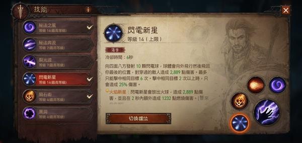 当你的战斗等级已经足够,我是用这一套来快速移动和刷怪。副手用释放闪电新星会加60%移速的那个,然后再加火焰新星。