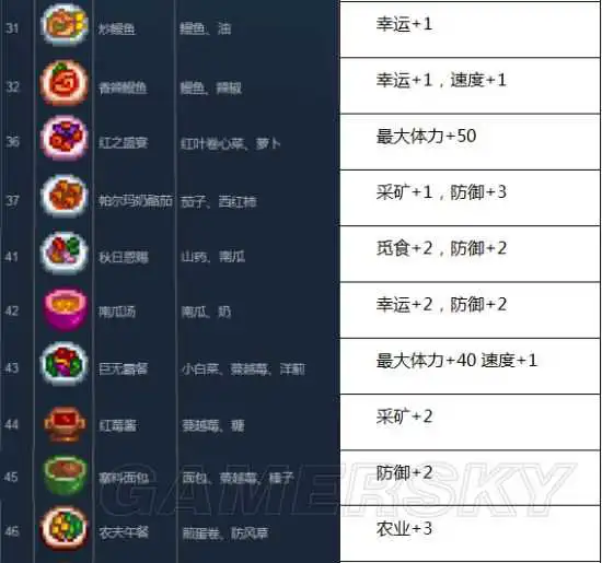 以下为所有有buff的特殊菜谱汇总,菜谱的Buff效果,所需的材料汇总。