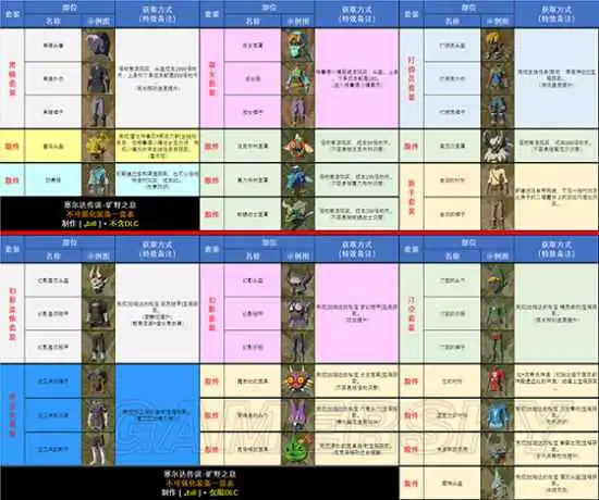 本版包括增加了套装特效描述、获取方式、可购买部件成本和特性备注。至于更详细的各部件对应任务和地点,我这里就不展开了。该图鉴分为可升级部分和不可升级部分,并且包含了DLC内容以及amiibo道具内容,所以应该是很齐全了。