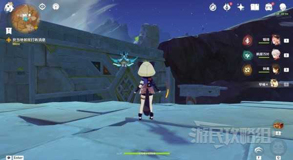 1.在岩石顶上。从小地图左下角传送锚点前方的风场起飞,一直往神瞳方向滑翔即可看到。