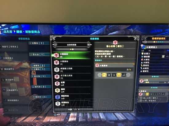 属性会心(火龙奥秘):将会心作用于属性伤害。这一作的物理弓伤害根本不能看。。。。(龙射流请右上角)。在相同的技能支持下(弱特等级、攻击等级、通常弹加强、刚射加强),出了属性会心的属性弓伤害远超物理弓。属于必备技能
