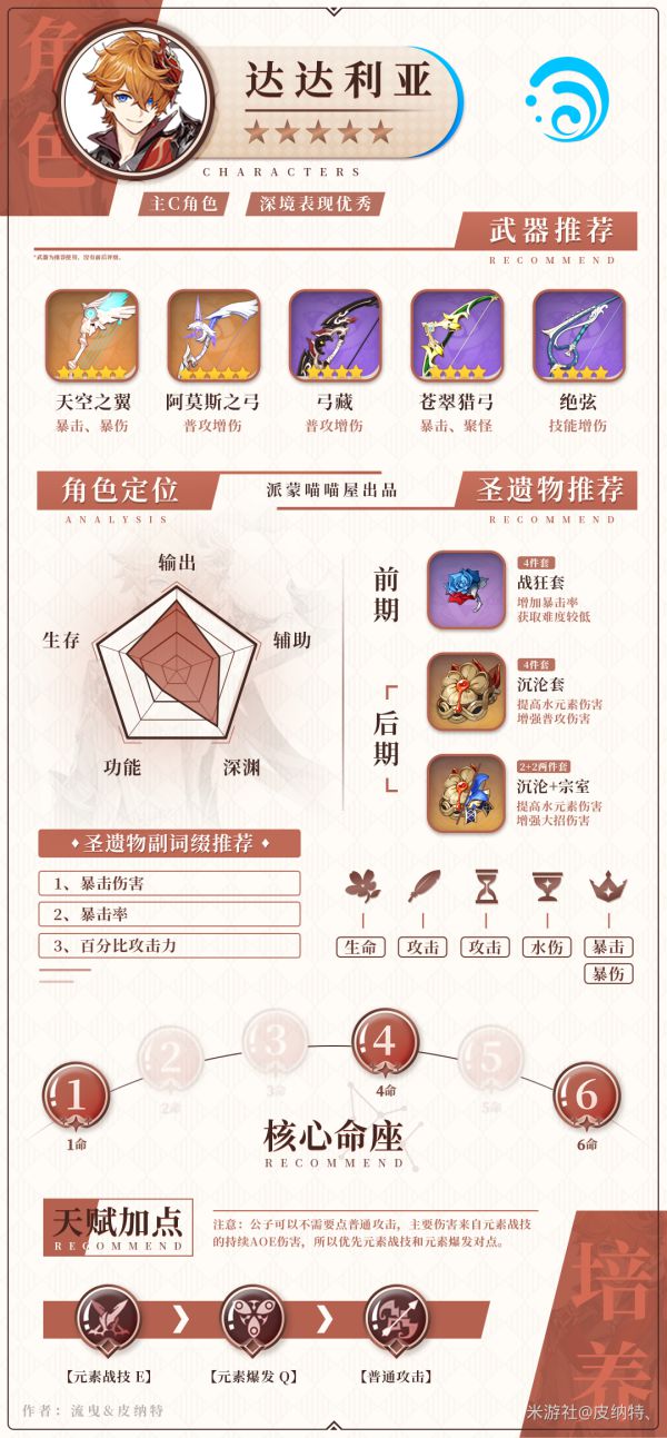 《原神》的水属性角色一般都有着较高的实用性,并且比较容易配队并打出元素反应。下面请看由“皮纳特、”带来的《原神》1.5版全水属性角色出装搭配整理,一起来看看吧。
