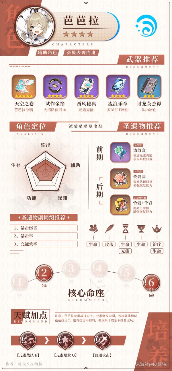 芭芭拉稍微说一下,因为前两天我也看到了小伙伴说到的芭芭拉通关12-3,依靠的芭芭拉带的流浪乐章以及乐团套打噼里啪啦的感电混合伤害成功击败12-3深渊使者,所以证明了,芭芭拉真的可以冲鸭,当然也只是可以玩但没必要当主C一直养下去哦。