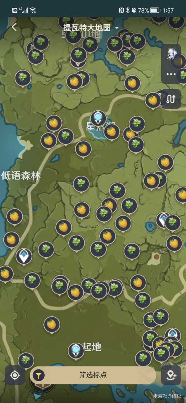 4.萃华木,在达达乌帕谷,我标记的星星的位置,上下来回刷就行了,不要忘了摘日落果,日落果是红色染料制作的重要材料