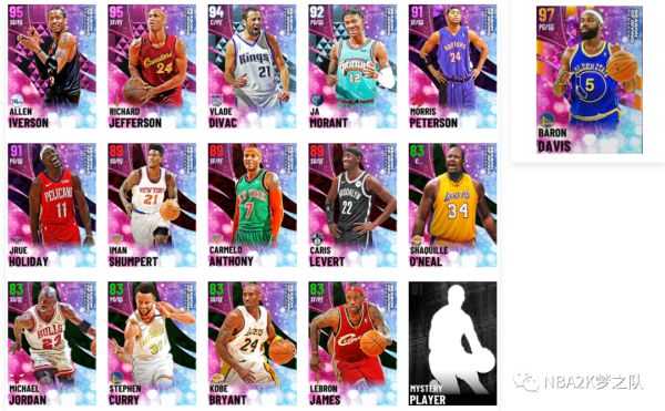 那么以上就是目前14张材料卡的获取方式了,其实除了杰弗森和皮特森,其他卡都很容易获得,而且我觉得2K在赛季最后应该还会派送一些代码和任务来给大家,争取让更多人拿到,毕竟巴郎戴维斯无论人气还实力都不算顶级,一旦进入银河时代就会很快被淘汰,所以即便没能拿到这张卡,也真没啥可惜的。