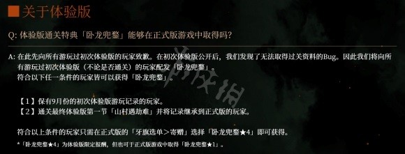 卧龙兜鍪★4为体验版限定报酬,但也可于正式版游戏中取得卧龙兜鍪★1。