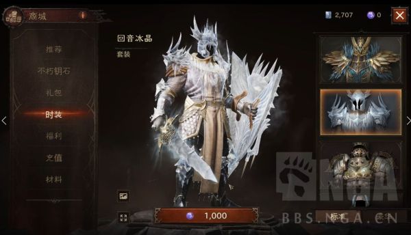 我要把这个放在最后来说,就是想问问他们到底是怎么算的,我们先来看看暗黑美服的商城把,你看除了之前提到的月卡、通行证、还多了个成长宝典,其他就是直购项目和时装了,别看这里这么多礼包,其实里面的东西还是永恒石和钥匙,就是个打折买钥匙的礼包,对于我们不打算买钥匙的人来说,完全就是个摆设。