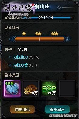 藏剑山庄副本的机制和倭船贡宝略有不同,评星进度条在开始为满值状态,随副本时间增长递减,也就是说在这里驻足的时间越长,副本评分时间越低哦,侠士要注意速战速决啦。