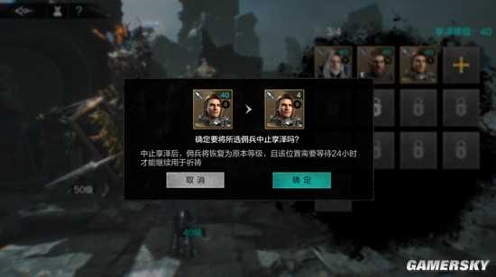 右边则是祈祷栏,将任意佣兵加入祈祷栏后,佣兵的等级将变为享泽等级