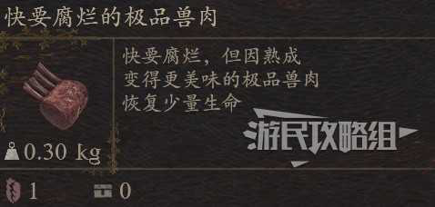 获取条件:将新鲜的兽肉放在背包中,时间过去一天后会自动变成快要腐烂的兽肉。