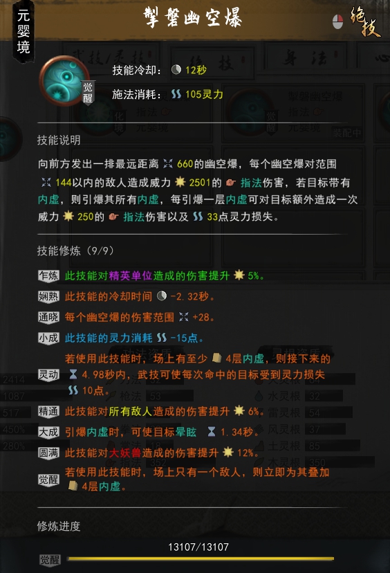可能有很多小伙伴选了徒手专精 发现大招没伤害 其实是因为只叠了内虚 没有引爆变成灵虚层数