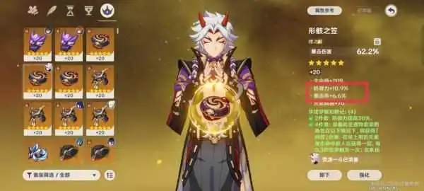 沙漏防御力百分比,副词条推荐暴击/暴击伤害。