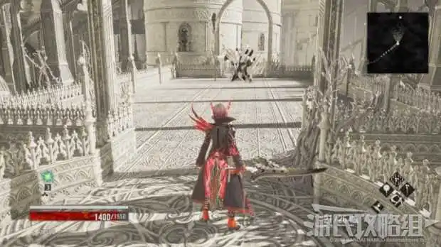 本次BOSS战的场景较小,看起来似乎很难取胜,但事实并非如此。尽管白狼狂战士攻击射程远、伤害足,但它也是少数几个可以挑空和背刺(想绕到它背后并不难)的BOSS之一。