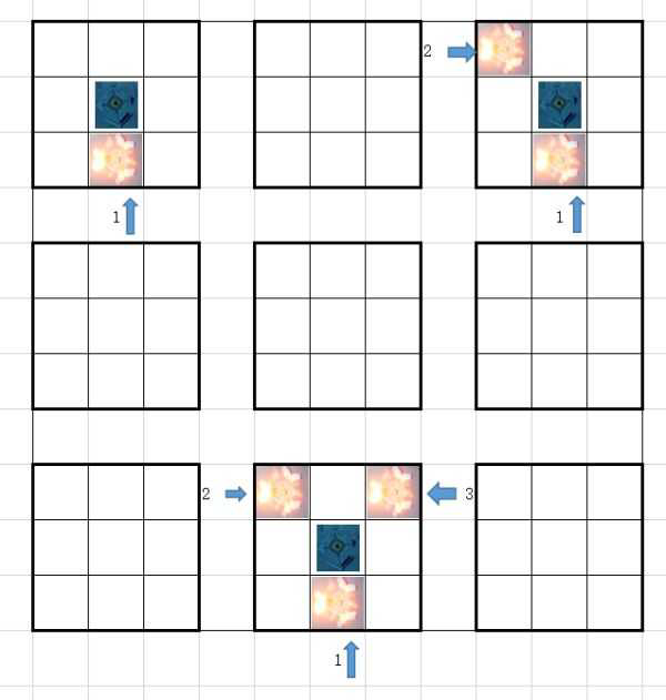 火把的数量暗示了第一、第二、第三,只有一个火把小九宫格为一,有两个的右上为二,下中为三。