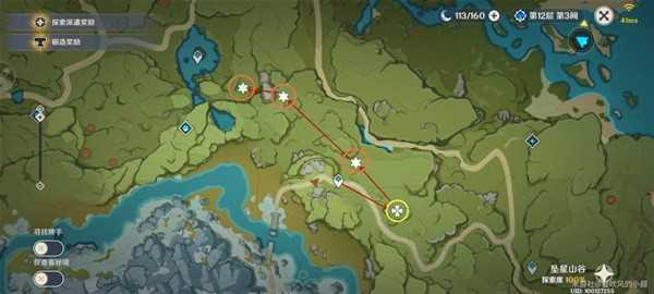 图中标点路线是按地图顺序排序,不是按推荐排序,如旅行者觉得该处距离传送点过远,可先放弃讨伐,如最后差最后几个突破材料,可在后面补上即可。