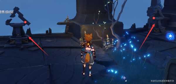 在石碑左侧可以看到两个小机关,保证在白天的情况下,击打这两个机关